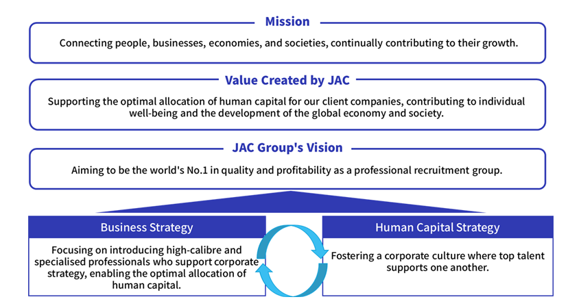 JAC Group’s greatest strength lies in its professional consultants, who have the expertise to introduce the most suitable talent to help client companies address their challenges. These outstanding consultants support one another and achieve results through teamwork, forming the foundation of JAC Group’s corporate culture. To achieve our business strategy goal of becoming No.1 in the world in quality and profitability, our human capital strategy is centered on expanding this exceptional talent pool while deepening our culture of mutual support. Furthermore, we are committed to creating an attractive workplace environment, as well as enhancing HR and compensation systems, ensuring that every talented individual can thrive by fully leveraging their unique strengths.